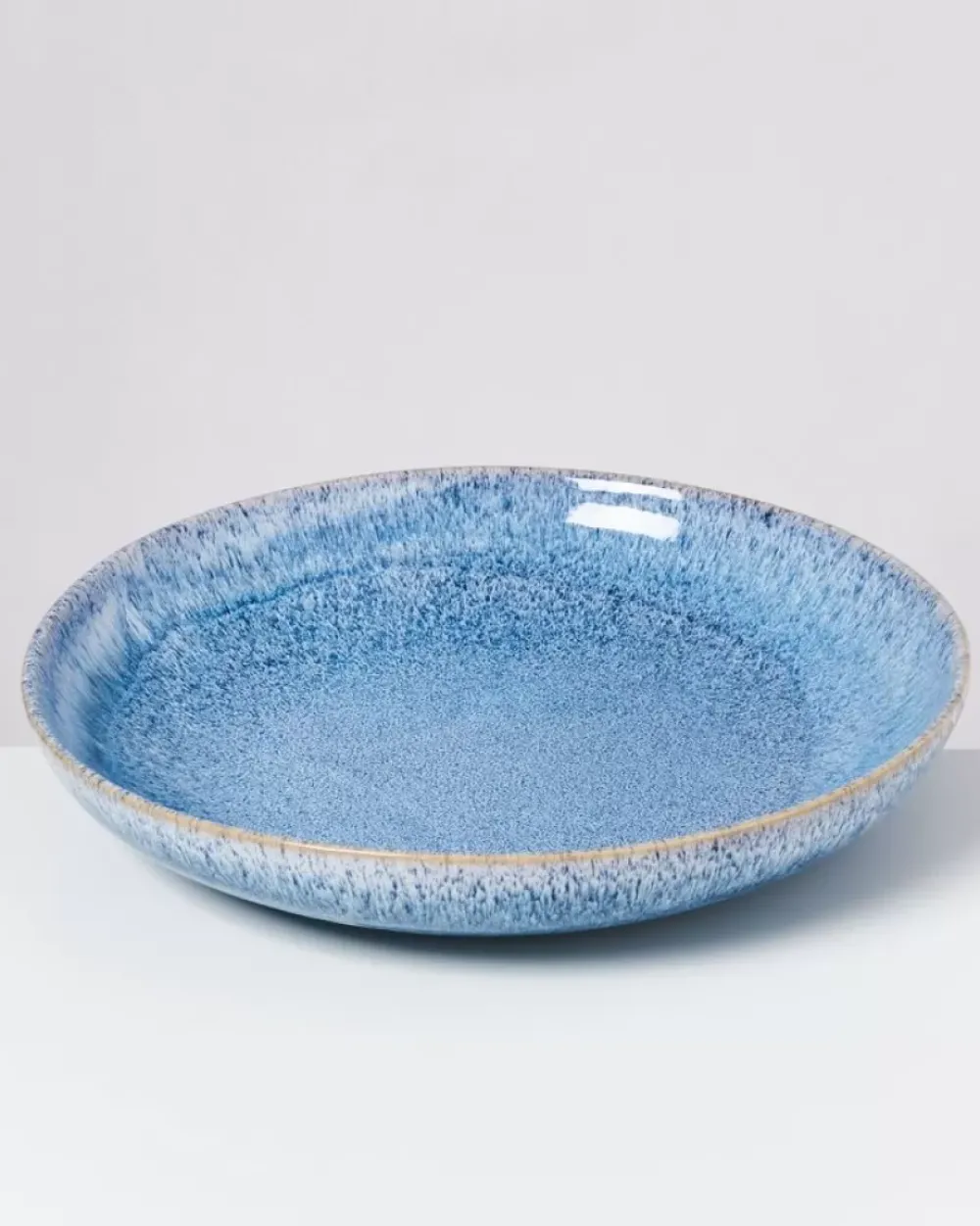 Ideal Zum Servieren Von Salaten, Pasta & Co.: Unsere Große Flache Servierschale, Wunderschön Mit Fröhlichen Blauen Sprenkeln.